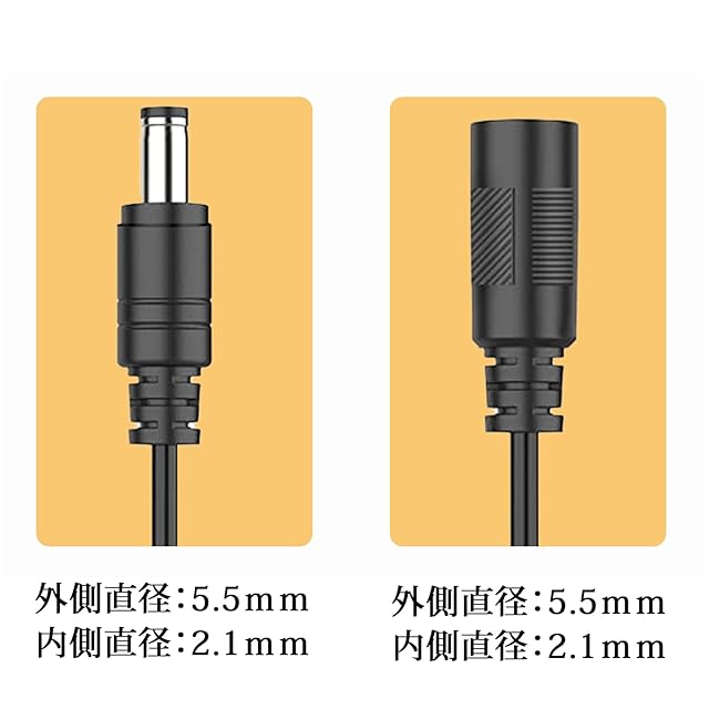 【ご注意】すべての電子機器が2.1mm x 5.5mmサイズのプラグ、特に小型のデジタル機器を使用しているわけではありません。このケーブルは、電源アダプタと互換性があるかどうかを決定するための最も確実な方法は、内径を測定することです電源アダプターのプラグの外径を示します。 電源アダプタが延長ケーブルに十分な電力を供給できることを確認します。