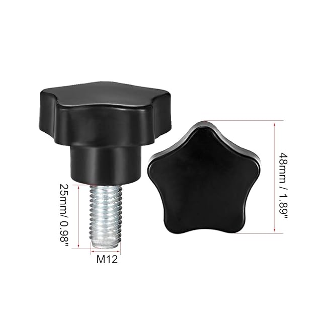 uxcell スターノブ マグネット製電子部品製 シルバートーンブラック 直径M12 長さ25mm 4個入り