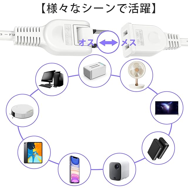 延長コード 0.3m 1個口 ホワイト 30cm 15A 1500W 耐トラッキング 二重被覆 絶縁キャップ ACアダプター すっきり接続 コンセント ちょっとコード ソフト 短い 電源コード 延長ケーブル 連結可 電源ケーブル 電源プラグ おしゃれ 業務用 作業用 (1本セット)