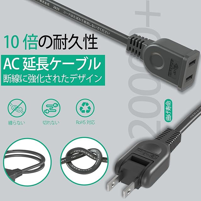 「延長用ケーブル」幅の広いACアダプタの接続、機器のコードが壁のコンセントに届かない場合などに、電源を延長するためのコード、機具が遠くてもコードをつなげられる。