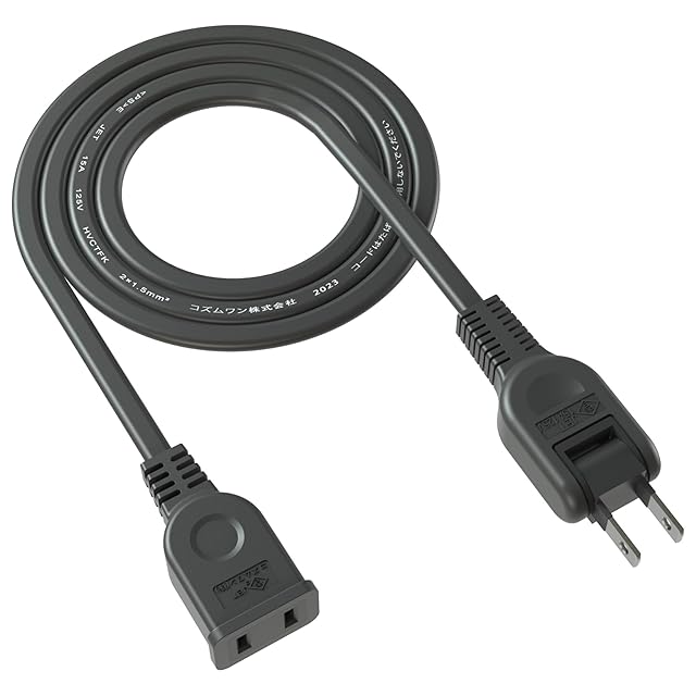 延長コード 1M 1個口 電源ケーブル 2ピンプラグ 家電用 すっきり接続 配線しやすい 電源ケーブル 2ピン式 2P 15A 1500W PSE 火災予防 絶縁キャップ付き 電源タップ 1口コンセント 二重被覆コード 耐熱性 軽量 1メートル RoHS対応 便利 干渉防止 差し込み 電機 ACアダプタ用電源延長コード 家電製品 1個口 スイングプラグ ブラック (1本入り)