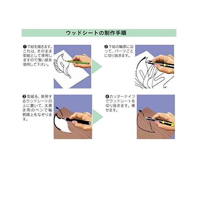 ウッドシート5種組<br>大 150×200mm<br><br>セン(または、ナラ)、チーク、ウェンジ、マコレ、ウォールナット<br>裏面:和紙貼合加工 説明書付<br><br>自然材の木目や色調を生かし、暖かな風合いの象嵌風の細工ができます。<br>木彫箱や時計文字盤、飾り額の装飾に、接着・表面保護には、木の収縮が生じない非水性材料をご使用下さい。<br><br>