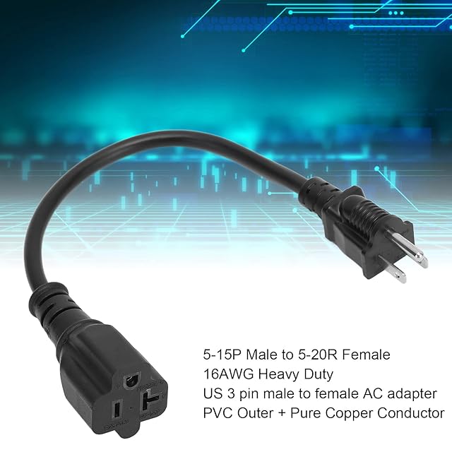 [電源ケーブル]Nema5‑15Pから5‑20Rの電源アダプターケーブル、16AWGヘビーデューティー、US3ピンオス-メスACアダプター。