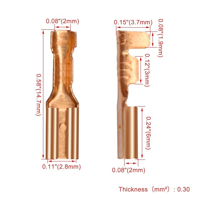 Heschen メススペードクイックスプライス圧着端子, 2.8mm圧着コネクタ, 非絶縁, 100個