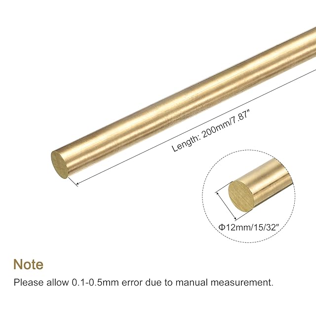 uxcell 真鍮ラウンドロッド 12 mm 真鍮ソリッド丸棒旋盤バーストック 200 mm長さ黄銅棒用 ドリフトパンチ各種シャフト DIYクラフトモデル 飛行機 船 車用 1個