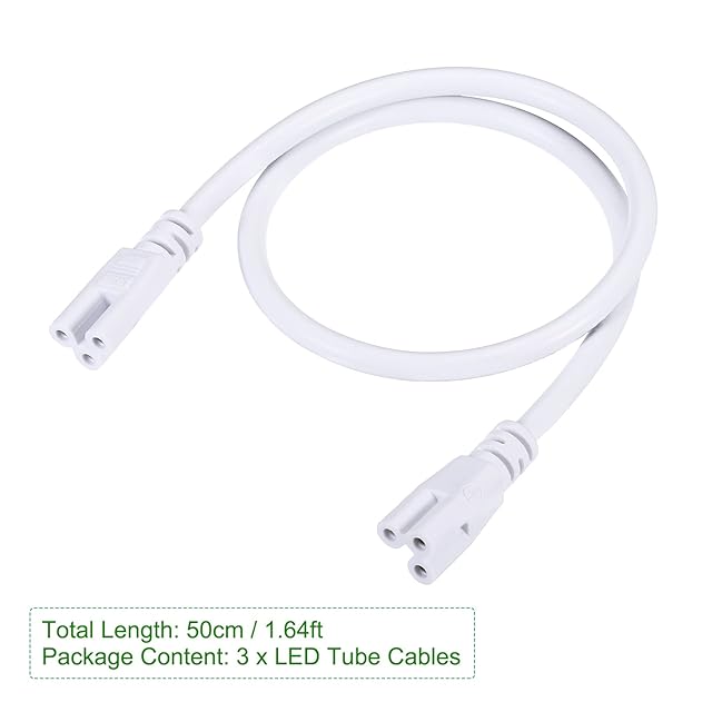 uxcell T5 T8 LEDチューブコネクタ丸型ケーブル メス-メスダブルエンド延長コード LED一体型ライトチューブ用 全長50CM 3本
