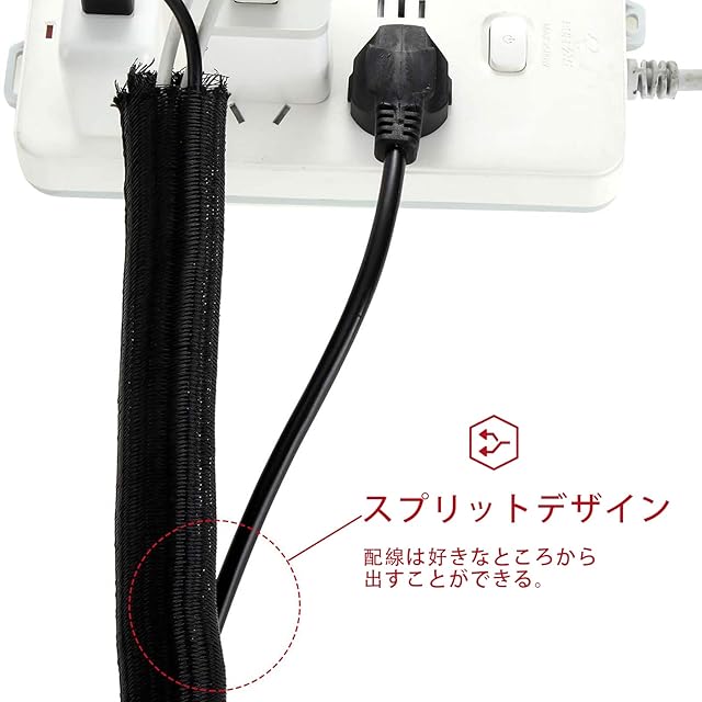 スプリッティングデザイン: ケーブルを必要なところから突き出せることができて、スリーブの途中からケーブルを取り出せます。ケーブル収納スリーブは、自由に必要な長さに合わせて調節できるので、DIYデザインにも最適です。