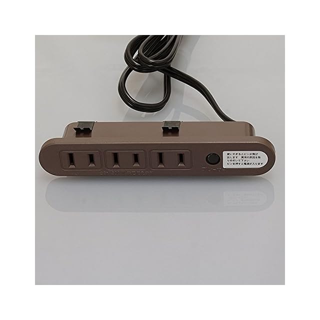 メーカー:NOATEK(ノアテック) / 株式会社ノア <br/> シリーズ名: 家具用コンセント <br/> <br/> 本体色:茶色<br/> コード色:黒色<br/> <br/> 容量:1500Wまで <br/> コード種類:VFFコード1.8m<br/> うす型3ヶ口<br/> ブレーカー付コンセント<br/> ワンタッチ式<br/> <br/> ワンタッチ式(バネタイプ)は一度取り付けるとしっかり固定されるため、<br/>取り外しが困難です。ご注意ください。<br/> コンセント部は抜き差しが固めになっています。<br/> バネ色が順次黒色から銀メッキ色(ステンレス地色) 変わります。 <br/> <br/>