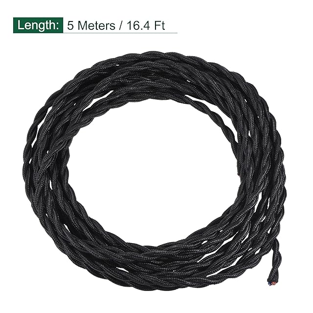 uxcell ツイストクロス被覆線 2コア 18AWG 5 M ヴィンテージ織物 電気ケーブル ペンダントライトDIYプロジェクト用 ブラック