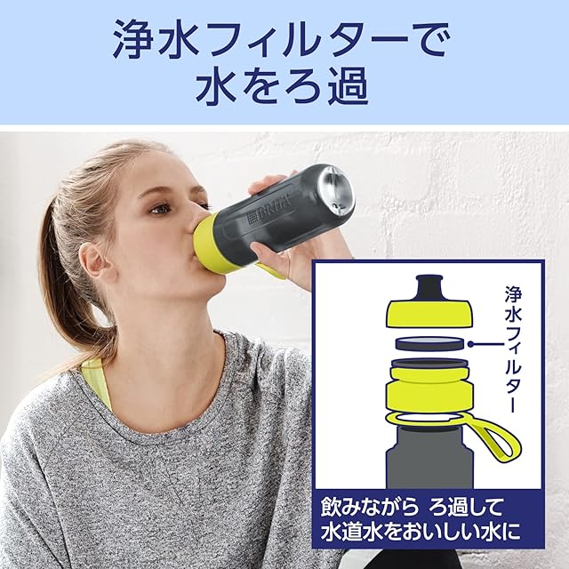 【どこでもおいしい水を】スポーツ、アウトドア、仕事場でも。カートリッジをセットし水道水を入れるだけで、どこでも安心安全なろ過水を楽しめます。カートリッジ1個の総ろ過水量150Lは、500mlボトル300本分に相当し、環境にも優しいウォータボトルです。