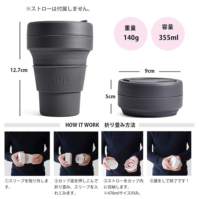 【カラー】カーボン【容量】355ml【サイズ】直径9cm×高さ12.7cm (折りたたみ時 5cm)【重量】約140g