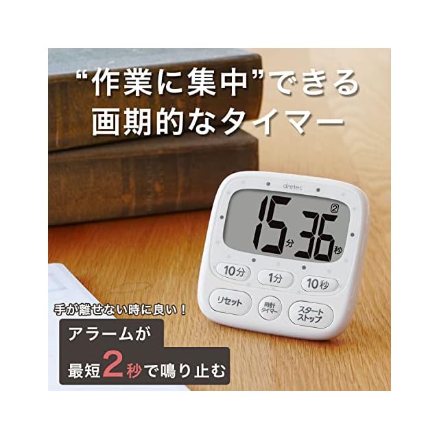 【タイマー&時計機能】タイマーモードと時計モードの2種類で切り替えられます。6つのキーボタンで操作もしやすく、時間の設定もらくらくです。画面が大きいので、少し離れた場所からでもはっきりと表示を見ることができます。