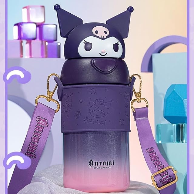 ポチャッコ ハローキティ ハンギョドン クロミ シナモロール マイメロディ ロッツォ エイリアン 水筒 水筒カバー 水筒バッグ 子供 ステンレス マグ ボトル 直飲み 保冷 保温 ワンタッチ オープン タイプ 漏れない 軽量 コンパクト 560ml (Color : クロミ, Size : 560ml)