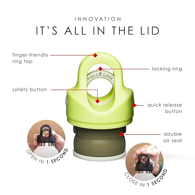 ★受賞歴のあるデザイン: RevoMax V2のツイストフリー/ねじ不要の蓋により、ワンクリックでボトルを片手で開けたりロックしたりすることができます。 独自の二重シールとトリプルロック機構により、漏れることがありません。 ネジがないことでカラビナにぶら下げているときも緩むことがありません。 内蔵の通気バルブは、キャップを開ける寸前に内部の圧力を放出するため、炭酸飲料を入れている場合でもボトルを開けるのが困難なことはありません。