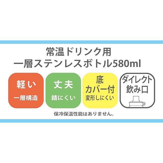 常温ドリンク用一層構造ステンレス水筒、常温で飲むことを想定した一層構造なので保冷保温効果はありません