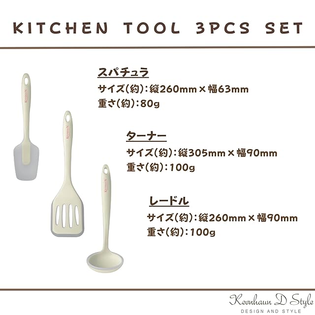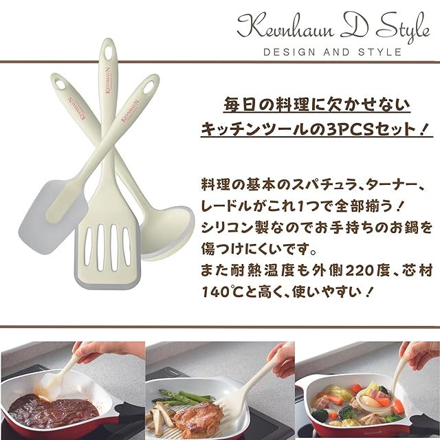 ケヴンハウン(Kevnhaun) シリコンキッチンツール3点セット ターナー・レードル・スパチュラ ホワイト フライパンや鍋を傷つけずきれいにすくえる 3本セット 熱に強い 滑りにくい 弾力性に優れる KDS146