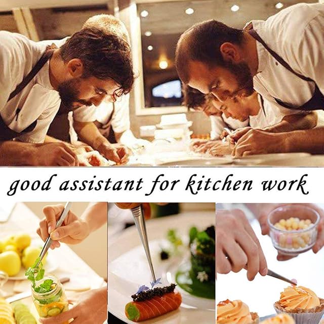 非常に正確:長さ8インチのピンセットの鋸歯状のスキルは、滑ることなく安全に物をつかむことができます。 微妙な食べ物などの取り扱いに最適です。 このステンレススチール製キッチンピンセットは、ほぼ外科的な精度を備えており、魚の骨やその他の小さくて細かい物体に到達するのに適しています。