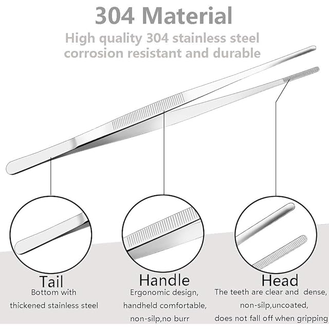 多目的:このピンセットトングは長さ8インチでスリムなデザインで、料理、ロースト、小さな物をつかむ、髪の毛を引き抜く、電気修理、クラフトに最適です。フードピンセットでさえ、小動物の餌やりや庭や水槽の掃除、植物のメンテナンスに使用できます。