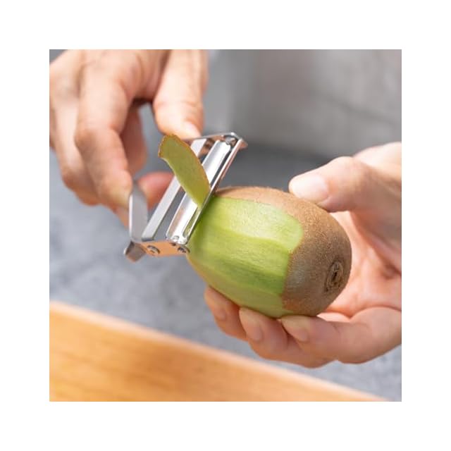 【かぼちゃもフルーツの皮もこれ1つで解決!】硬いカボチャの皮さえも力を入れずにスムーズに皮をむくことができます。また、柔らかくて皮が薄く、刃が入りにくいキウイフルーツのような食材にも対応しています。このように、エバーピーラーミニは硬い野菜から柔らかい果物まで、幅広い食材に対応できる優れたピーラーです。その使いやすさは、ご家庭での料理はもちろん、プロの料理人にも非常に重宝されるアイテムとなっています。