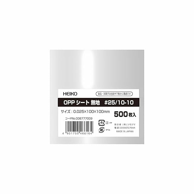 シモジマ ヘイコー OPPシート 食品用 0.025mm厚 縦100x横100mm 500枚