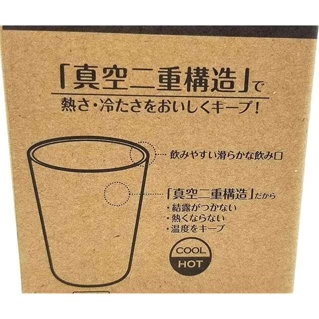 真空断熱二重構造で熱さ、冷たさをおいしくキープします。冷たいものを入れても表面に水滴が付きません。