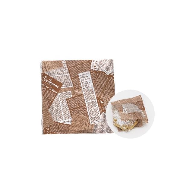 袋の内側にポリエチレンをラミネートしていますので、食品に紙片が付着しません。持ちやすく、手を汚さずに食べられます