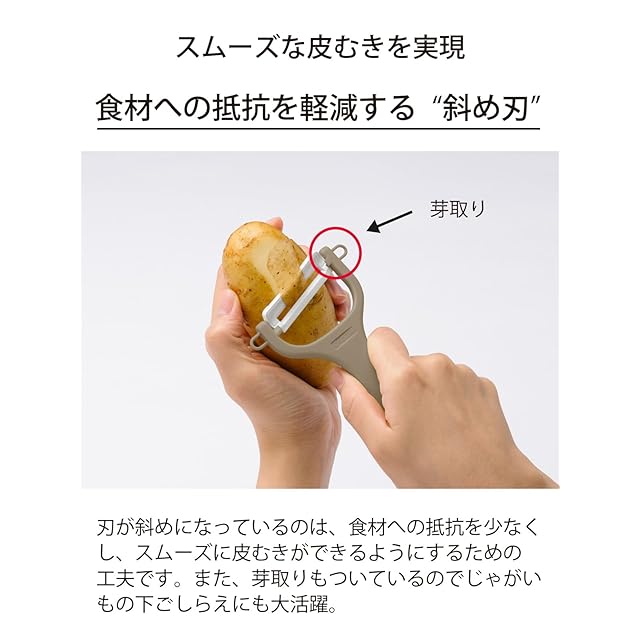 【セラミックスの鋭い切れ味】セラミック刃だから「軽く、素早く、キレイに切れる」ななめ刃ピーラー