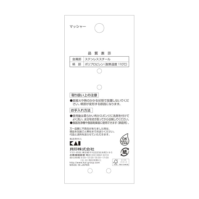 貝印 KAI マッシャー リトルシェフクラブ 日本製 DL7201