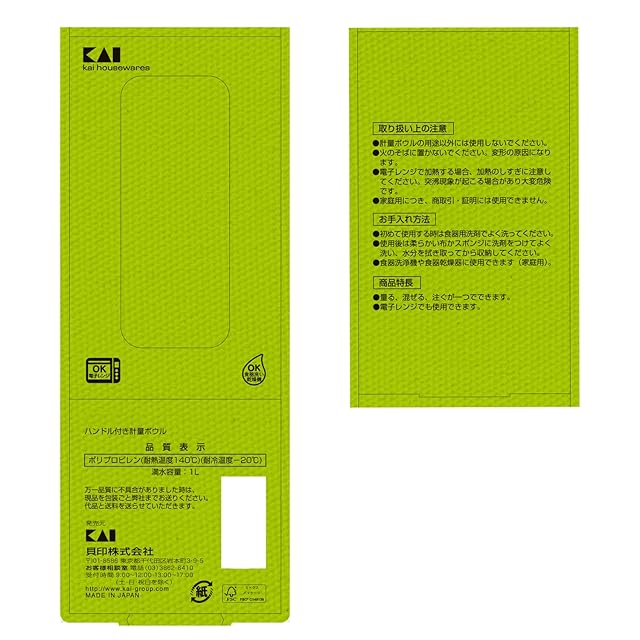 貝印 KAI ハンドル付き 計量ボウル リトルシェフクラブ 日本製 DL7204