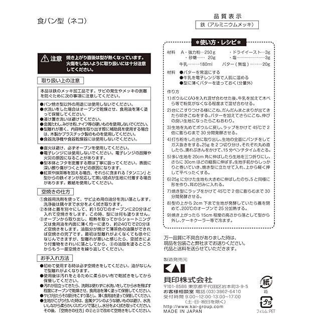貝印 KAI 食パン型 ネコ リトルシェフクラブ 日本製 DL7222