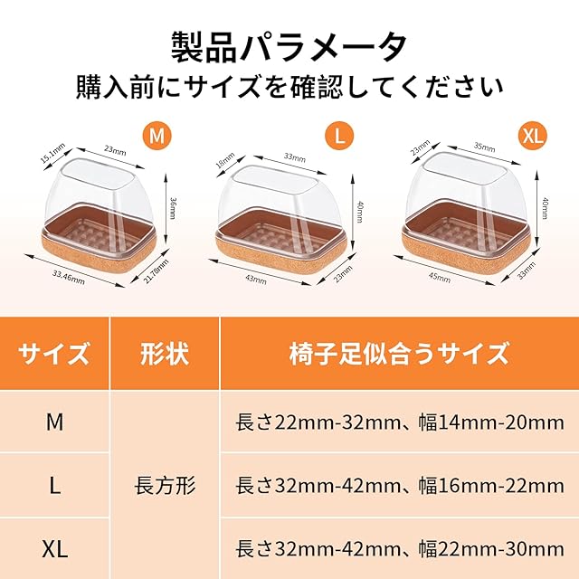 [パッケージ内容]フェルト椅子脚カバ x 8個。適応サイズ :長さ3.2cm~4.2cmの家具脚に対応。ご注文の際、お手持ちの家具脚のサイズをよくお測りください。