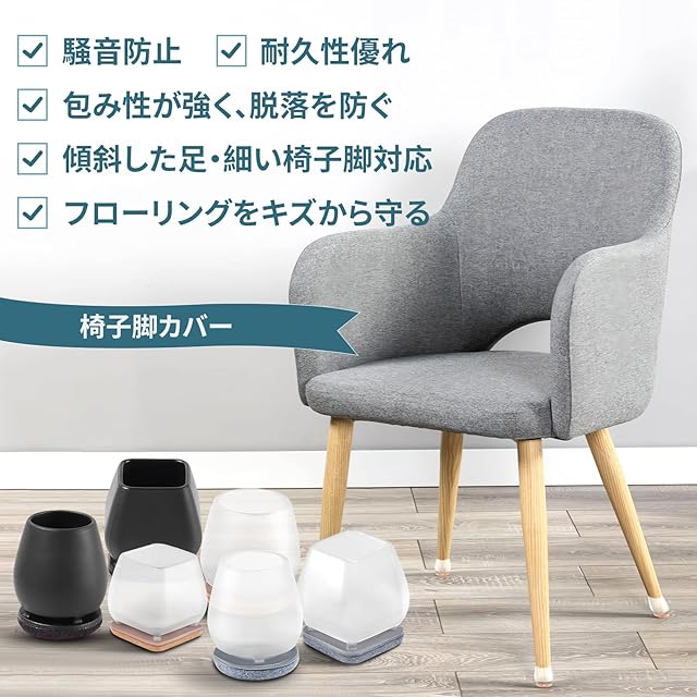 【多機能で簡単な取り付け】 この椅子脚カバーは床の損傷や騒音の防止、滑りやすさ、カビや湿気の防止、そして繰り返し使用が可能です。カバー内側には特殊な防滑溝があり、長時間の使用でも脱落しません。指先で軽く押すだけで、椅子の脚を完璧に包み込むことができます。