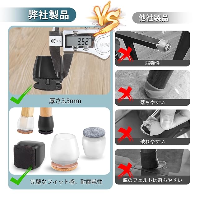 [パッケージ内容]フェルト椅子脚カバ x 16個。Large-適応サイズ :椅子脚の直径範囲 25mm - 33mm。ご注文の際、お手持ちの家具脚のサイズをよくお測りください。