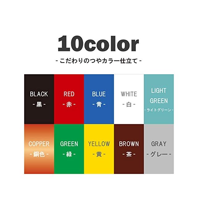 カラーバリエーションは全10色。緑・薄緑・白・黒・茶・グレー・青・赤・黄・銅色。