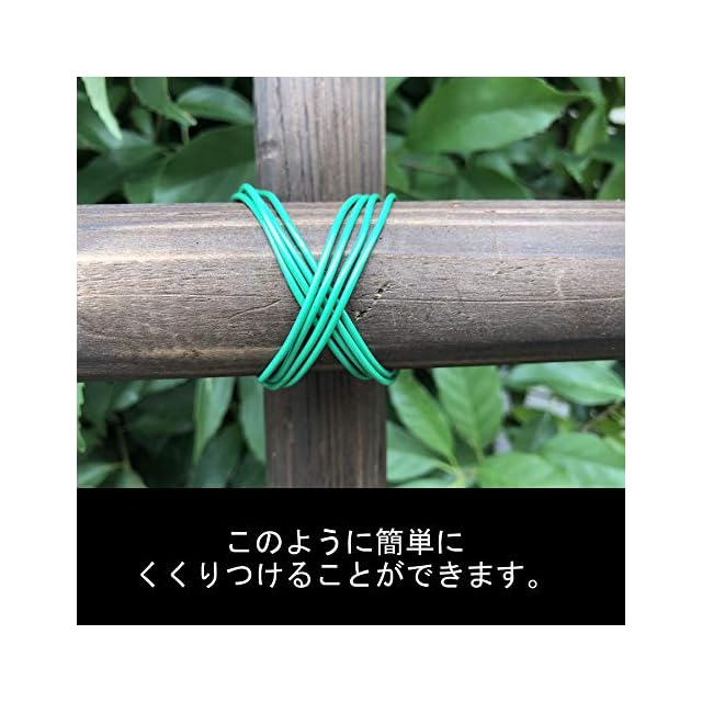 安全耐荷重:75kgf。なまし鉄線にPVC(ポリ塩化ビニール)を被膜した針金です。