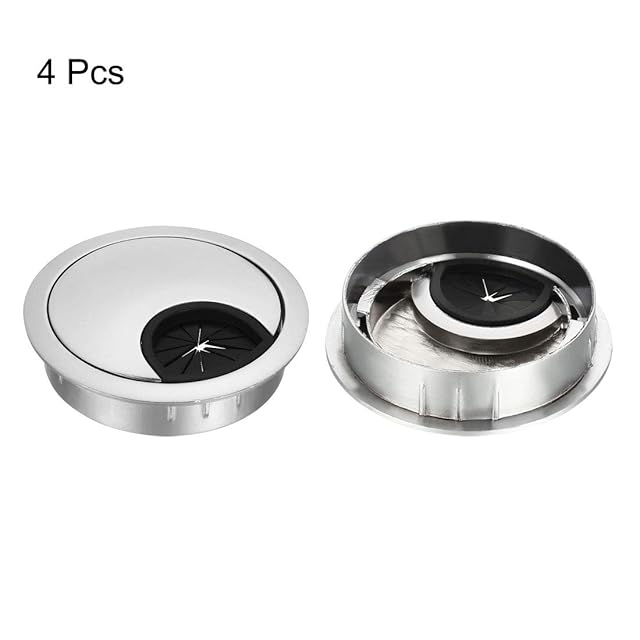 uxcell デスクグロメット ケーブル穴カバー 53mm穴直径 亜鉛合金 デスクグロメット ワイヤーオーガナイザー シルバートーン 4個入り