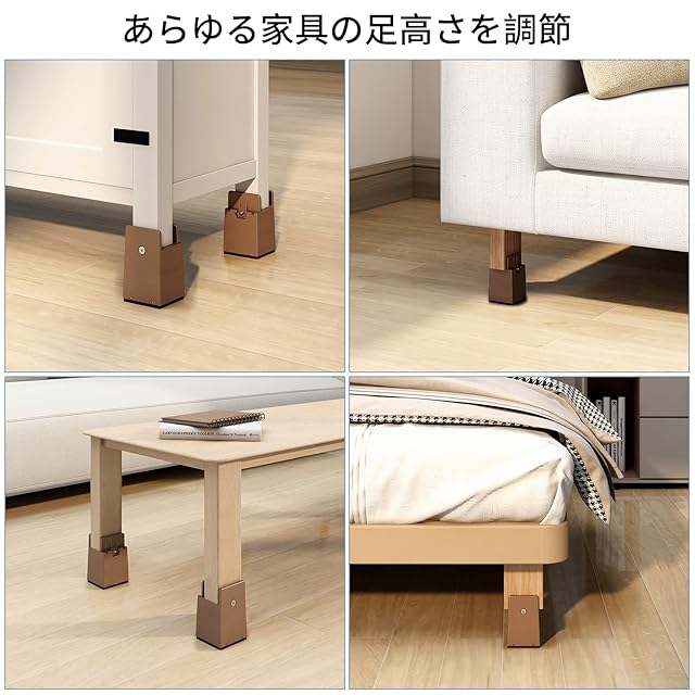 BOIVSHI テーブル 脚 継ぎ足し 高さ調整 継ぎ脚 高さ100mm 4個セット こたつ 継足し テーブル脚台 幅を調節できる・0mm~54mm