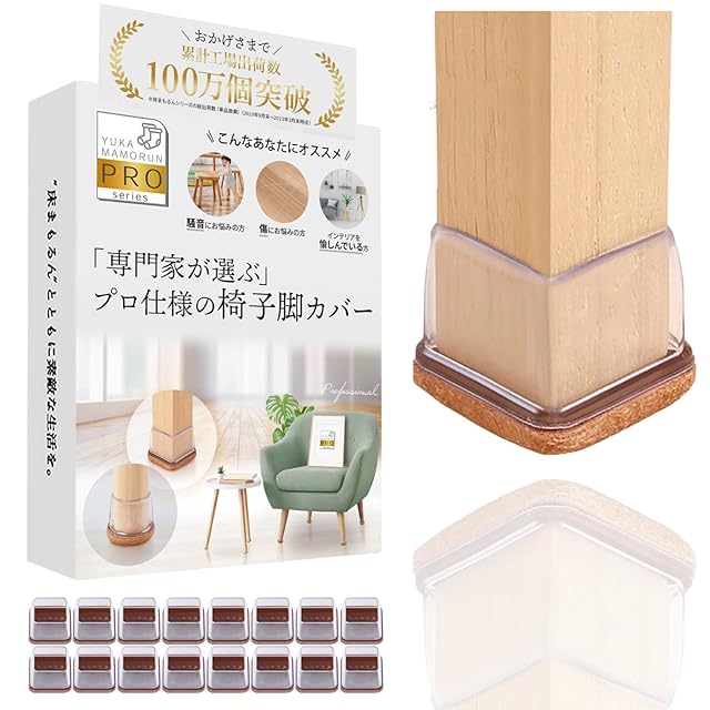 椅子脚カバー 【インテリアデザイナー監修】 いすの足カバー 『専門家が選ぶプロ仕様』 椅子足キャップ 透明 角脚用 16個セット [床まもるんPRO]