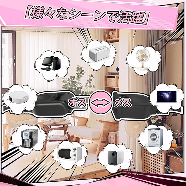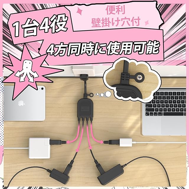 ➿ACアダプタを無駄なく設置できる4分岐タイプの電源延長コードです。