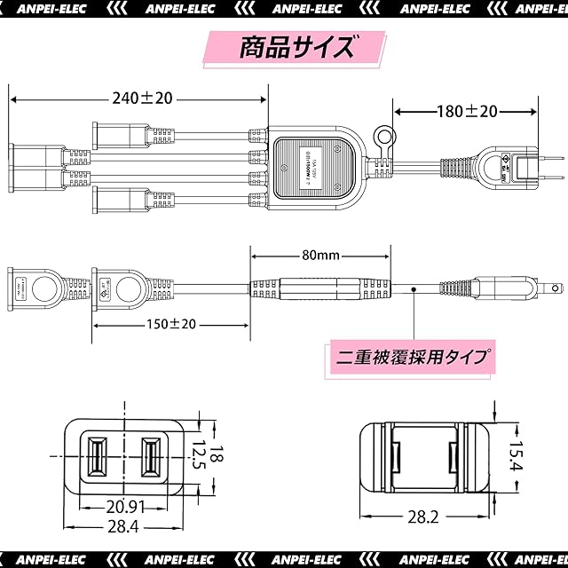 ➿よじれにくく丈夫な保護被ふくコードを使用しています。