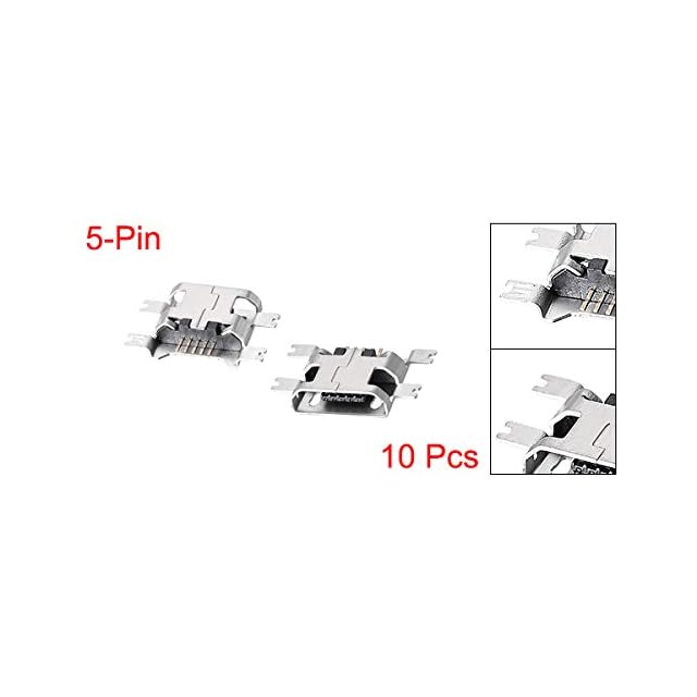uxcell マイクロUSBメスソケットコネクタポート 5ピン DIP 180度ピンジャック プラグイン 10個入り