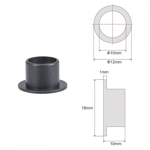 サイズ - ボア直径: 10mm, 外径: 12mm, 全長: 10mm, フランジ直径: 18mm, フランジ厚さ: 1mm