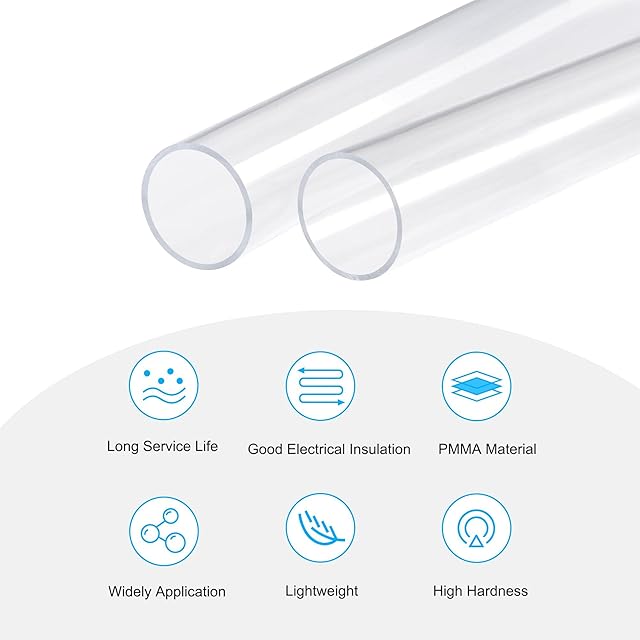 uxcell アクリルパイプ硬質丸管 クリア 内径36 mm 外径40 mm 全長305 mm 照明、モデル、配管、工芸品用 2個