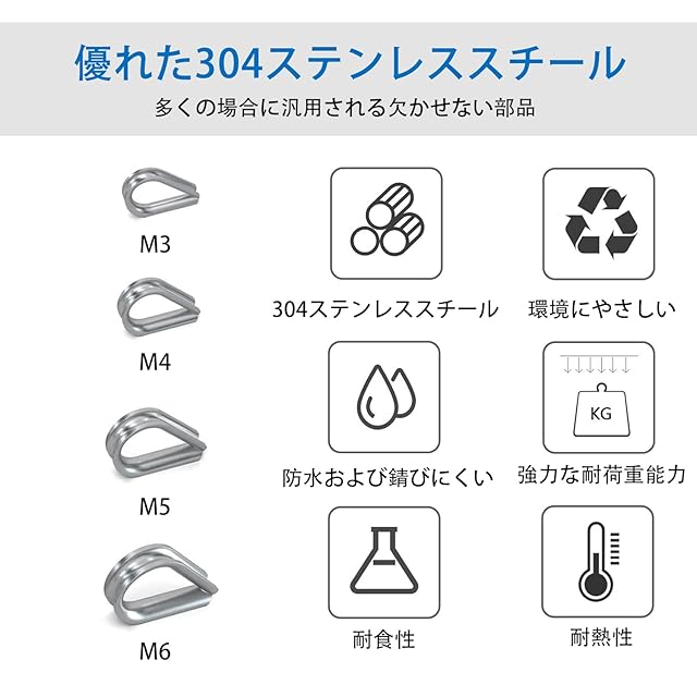【適用範囲】-このステンレス鋼の指ぬきは、ケーブルストランドとその他のフィッティングを接続に使用して、ケーブルとロープスリ ングのアイを摩耗から保護する際にサポートを提供するために使用されます。
