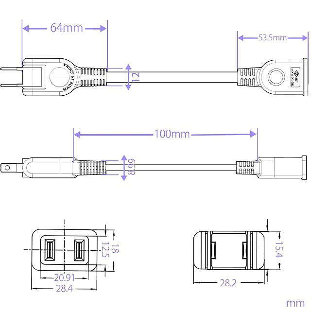 差込口は1個口で、2ピン式プラグ接続できる構造になっています。