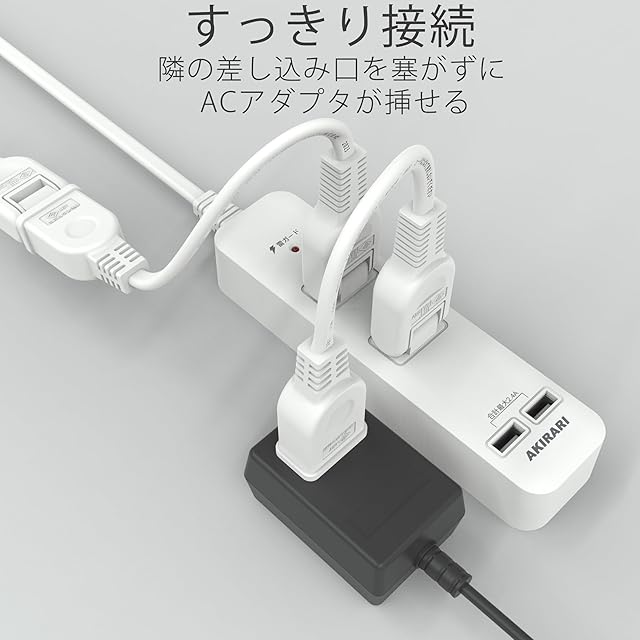 幅の広いACアダプタの接続に最適なACアダプタ用電源延長コードです。