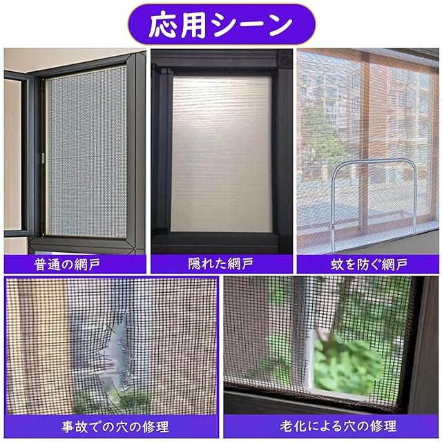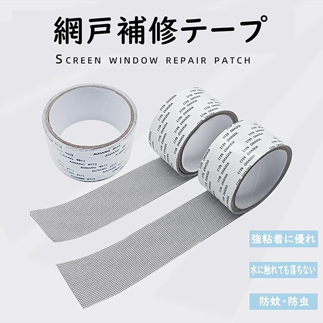 <ul><li>【自由にカット可能】合計2巻、各巻2メートル。穴や損傷、裂け目の程度に応じてハサミで自由にカットでき、無駄を避けることができます。細かいメッシュは、通気性がありながらも、蚊などの虫を防ぐことができます。<br /></li><li>【強力な接着】粘着性が高く、しっかりと固定でき、耐久性も優れています。取れにくく、長期間使用できます。粘着タイプであるため、フィルムを剥がして修復が必要な場所に貼るだけで、簡単に修復できます。</li><li>【使用が簡単】使用前に破れた部分の周りの埃をきれいにし、乾燥させてください。修復する前に、破れた部分を整え、網戸を平らに保つことで落ちるのを防ぐようにしてください。</li><li>【優質の素材】耐久性のあるポリエステル繊維+513両面テープの材料で作られ、柔らかく、網戸に完璧に合わせることができ、隙間が生じにくい。</li><li>【幅広い用途】この網戸修復キットを使用すれば、裂けた網戸を交換する必要はありません。損傷した部分に貼り付けるだけで、簡単に修復できます。カーテン、蚊帳、網戸、屏風、テント、庭の網戸など、さまざまなアイテムの修復に適しています。</li></ul>