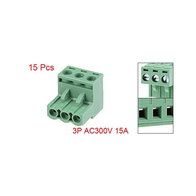 特徴:<br />*3ポジション、5.08mmピッチ、プラグインPCB端子ブロックコネクタ。<br />* PCBターミナルは、小型電子時計、計算機、グレネラルコンピュータ、通信エレクトロニクス機器など、ほぼすべての電子機器に広く使用されています。<br />* PCBディンレールアダプタ。<br />*取り付けと取り外しが簡単です。<br />仕様:<br />製品名:ターミナルブロック<br />ポジション:3P<br />定格値:AC300V 15A<br />ターミナルスタイル:直角ターミナル<br />ターミナルピッチ:5.08mm<br />全体サイズ:15x 15 x 17.5mm (L*W*H)<br />材質:プラスチック、金属<br />メインカラー:シルバートーン、グリーン<br />重さ:69g<br />パッケージ内容:<br />15個 x PCBターミナルブロック