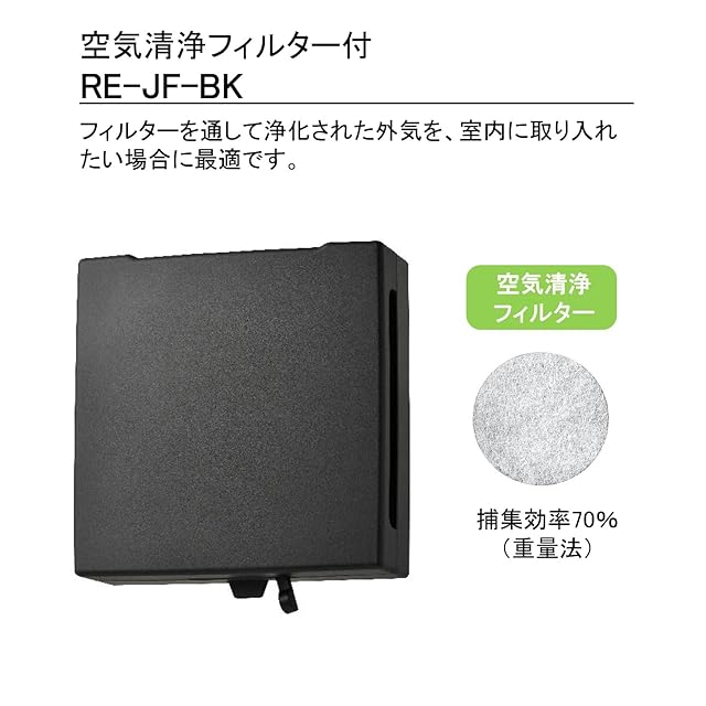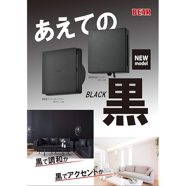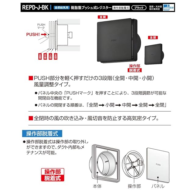 バクマ工業 REPD-100JF-BK 樹脂製プッシュ式レジスター 空気清浄フィルター付 自然給気用 操作部着脱式 壁面・天井面取付兼用型 ブラック