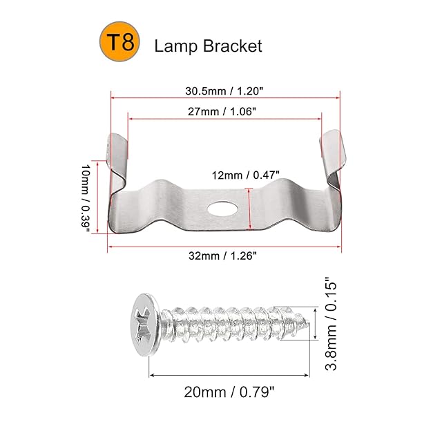 uxcell T8クリップ ブラケットハンガー 蛍光チューブ ランプホルダークランプ ネジ付き LED電球シーリングランプ用 10個